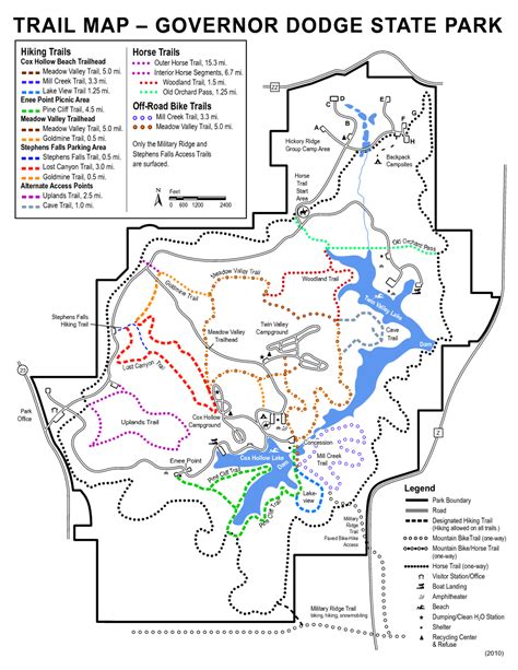 Located in the beautiful state of Wisconsin, Governor Dodge State Park Trail Map is a popular destination for outdoor enthusiasts and nature lovers. With over 40 miles of hiking trails, 15 miles of mountain biking trails, and two lakes, this park offers a variety of activities for visitors to enjoy.